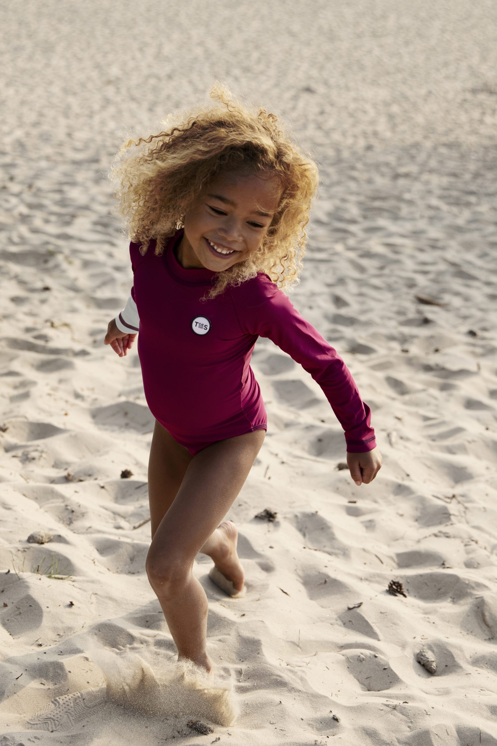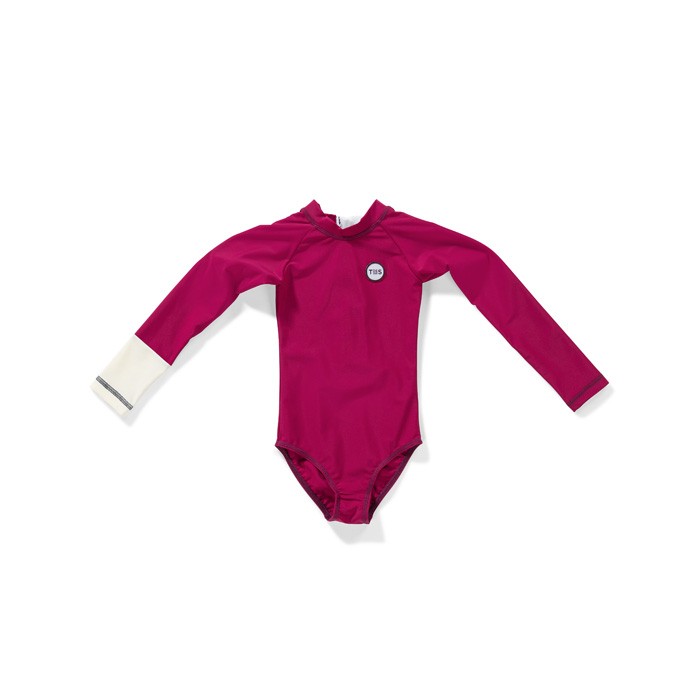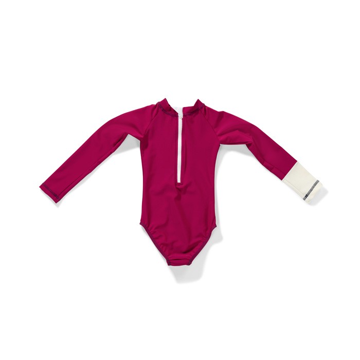 This is the Malie Violet Purple long sleeve swimsuit for girls.
